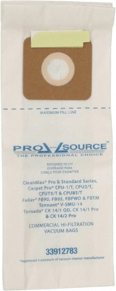 PRO-SOURCE - Meltblown Polypropylene & Paper Vacuum Bag - For CleanMax Standard and Pro-Series, Tennant V-SMU-14, Tornado CK 14/1 QD, CK 14/1 Pro & CK 14/2 Pro, Carpet Pro CPU1/T, CPU2/T, CPU75/T & CPU85/T & Fuller Models FB90, FBP95, FBPHD & FBTM