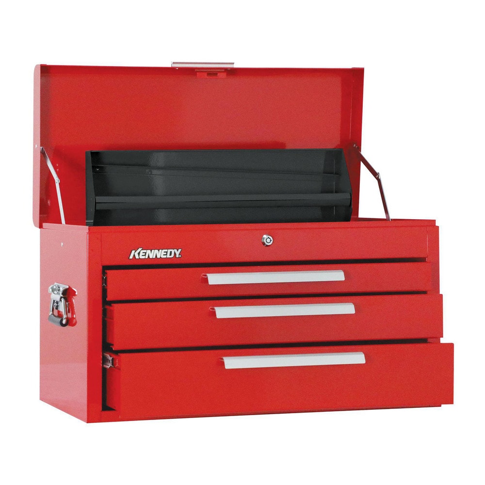 | Features | Tubular lock keeps contents secure, Locking stays hold lid open, Lift-out tray with socket set divider, Steel, friction slides support 90 lbs. per drawer, Compatible with Kennedy 273, 275, 277, 295, 297, 376, & 378 roller cabinets, Made in the USA |