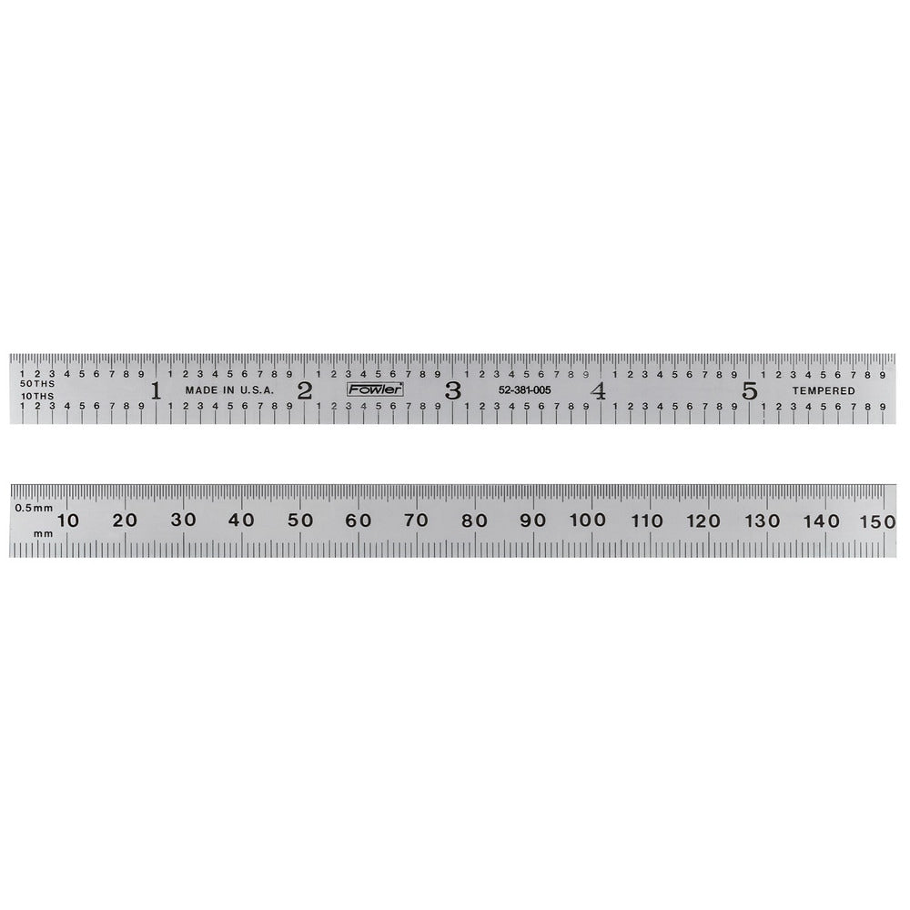 Steel Rules; Material: Steel; Graduation: 0.50; 1.00; Graduation (Inch): 1/10, 1/50; Tip Style: Flat; Color: Silver; Flexibility: Flexible
