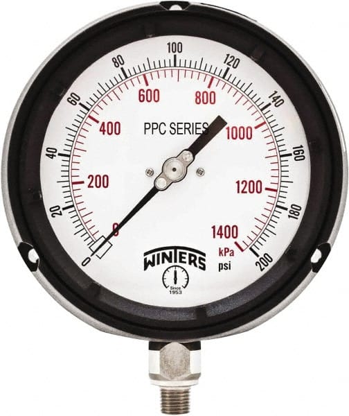 Winters - 4-1/2" Dial, 1/4 Thread, 0-200 Scale Range, Pressure Gauge - Bottom Connection Mount, Accurate to ±0.5% of Scale