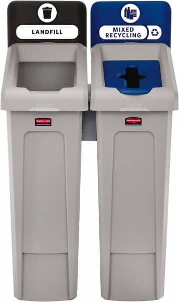 Rubbermaid - 23 Gal Gray Rectangle Recycling Container - Polyethylene, Landfill, Mixed Recycling Graphic, 40-1/4" High x 21-1/2" Long x 24" Wide, Lid Included