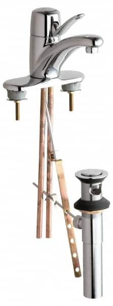 Chicago Faucets - Single Handle, Deck Mounted, Single Hole Bathroom Faucet - Ceramic Mixing Cartridge, Pop Up Drain, Integral Spout