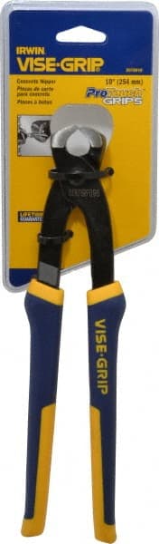 Irwin - 10" OAL, 10 AWG Capacity, 0.67" Jaw Length x 1-3/8" Jaw Width, Concrete Nipper Pliers - End Cut Head, ProTouch Handles