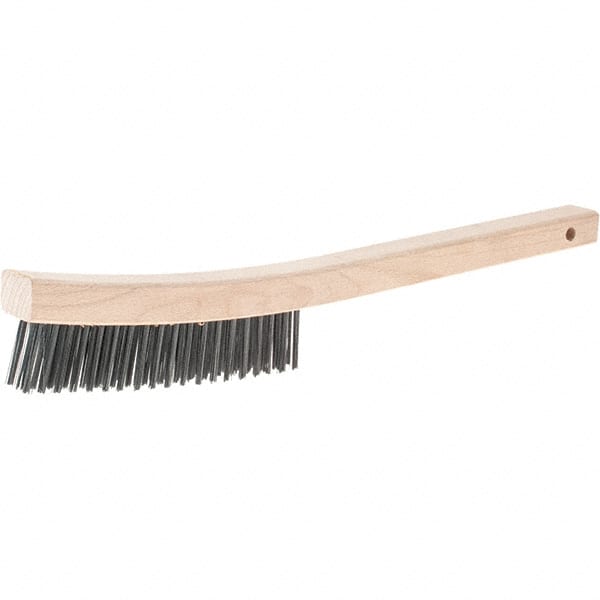 Weiler - 3 Rows x 19 Columns Steel Scratch Brush - 14" Brush Length, 14" OAL, 1-3/16 Trim Length, Wood Handle