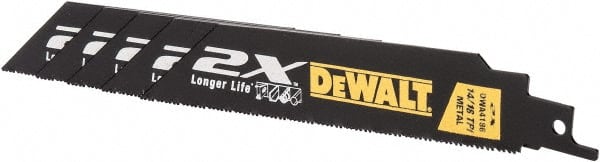 DeWALT - 6" Long x 1" Thick, Bi-Metal Reciprocating Saw Blade - Straight Profile, 14 to 18 TPI, Toothed Edge