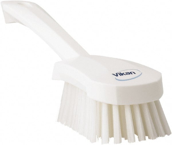 Vikan - 1.3" Bristle Length, Polyester Scrub Brush - 4-1/4" Long x 2-3/4" Wide Head, 10" OAL, White, Polypropylene Block
