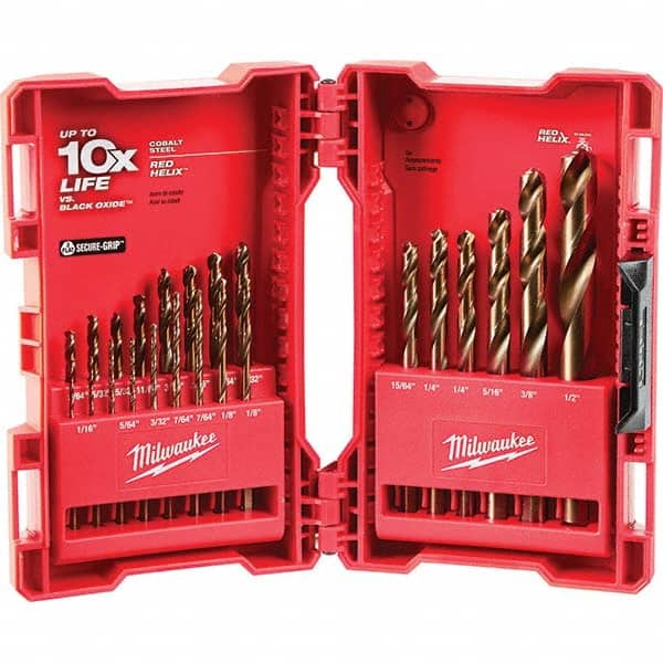 Milwaukee Tool - Drill Bit Sets; System of Measurement: Inch ; Drill Bit Material: Cobalt ; Drill Bit Set Type: Twist Drill Bits ; Minimum Drill Bit Size (Inch): 1/16 ; Maximum Drill Bit Size (Inch): 1/2 ; Drill Point Angle: 135