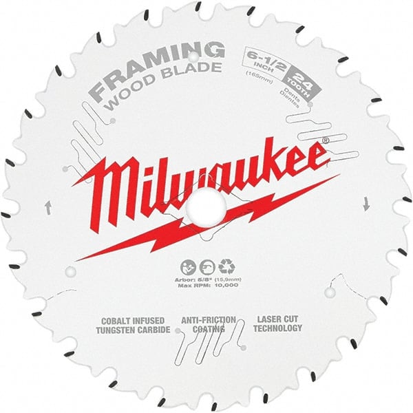 Milwaukee Tool - 6-1/2" Diam, 5/8" Arbor Hole Diam, 24 Tooth Wet & Dry Cut Saw Blade - Tungsten Carbide-Tipped, Framing Action, Standard Round Arbor