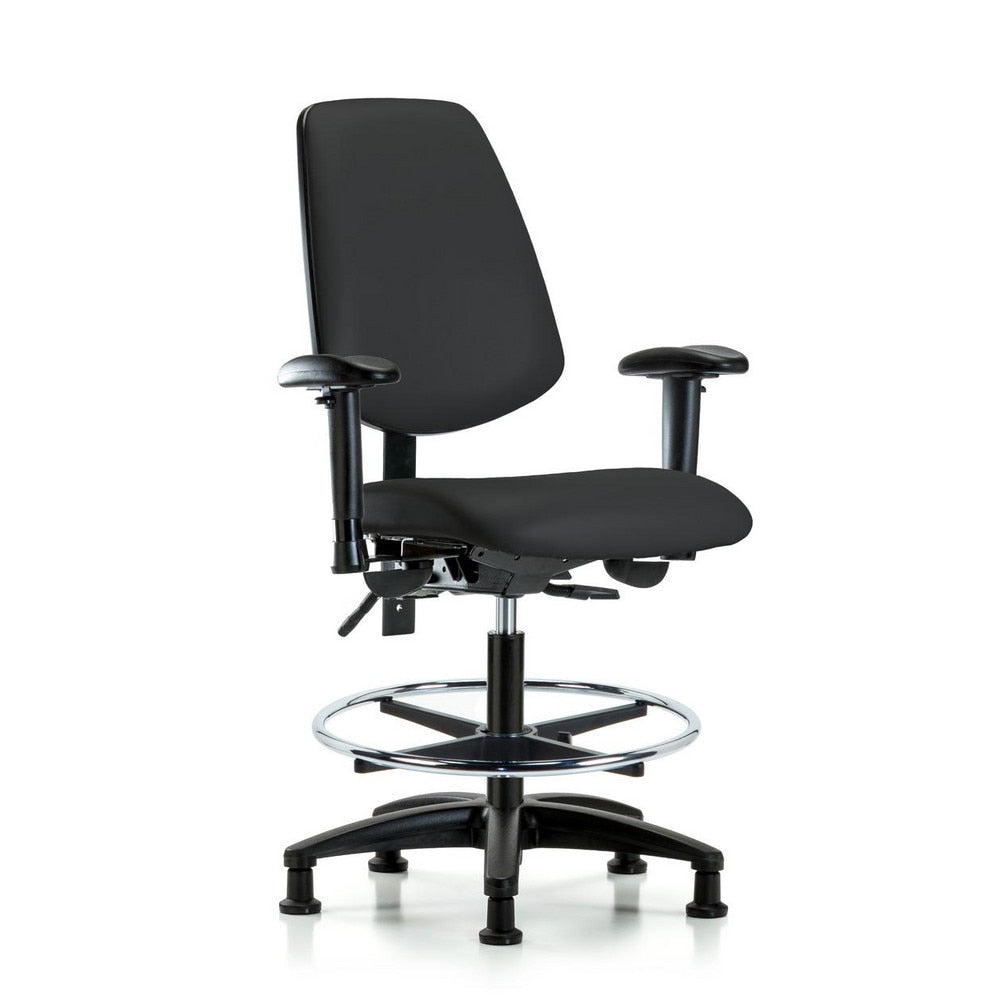 Ergonomic Multifunction Task Chair: Vinyl, 28-1/2" Seat Height, Black