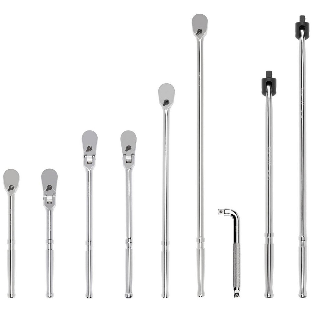 Includes | Breaker Bars: 18" & 24"; 14" Flex Head Bent Ratchet; 7-1/2" Wobble L-Handle; Fixed Head Ratchets: 10-1/2", 18", 24":Flex Head Ratchets: 10-1/2" & 14" |