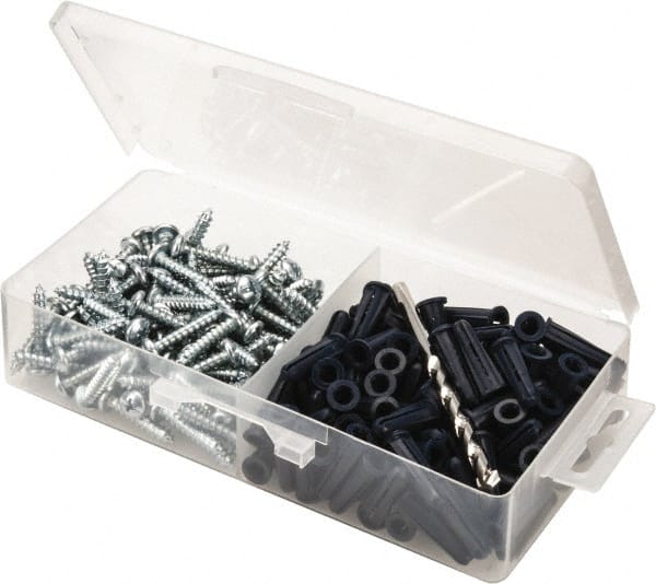 Value Collection - 200 Piece, #10 to 12 Screw, Plastic & Steel Slotted/Phillips Drive Anchor Assortment - Zinc Plated, 1" Long