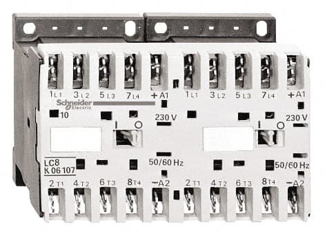 Schneider Electric - 3 Pole, 24 Coil VAC at 50/60 Hz, 16 Amp at 690 VAC, 20 Amp at 440 VAC and 9 Amp at 440 VAC, Reversible IEC Contactor - BS 5424, CSA, IEC 60947, NF C 63-110, RoHS Compliant, UL Listed, VDE 0660