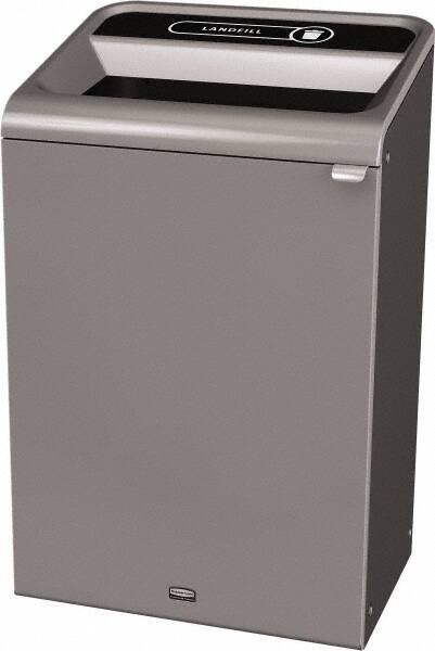 Rubbermaid - 33 Gal Gray Rectangle Decorative Indoor Single Stream Waste Receptacle - Metal, Landfill Graphic, 37.965" High x 24.051" Long x 19-1/2" Wide, Lid Included