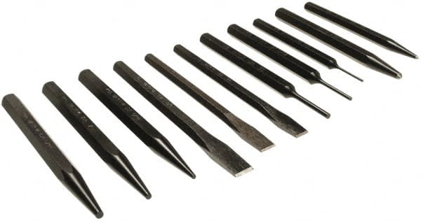 Mayhew - 11 Piece Punch & Chisel Set - 1/4 to 3/8" Chisel, 1/16 to 1/4" Punch, Hex Shank