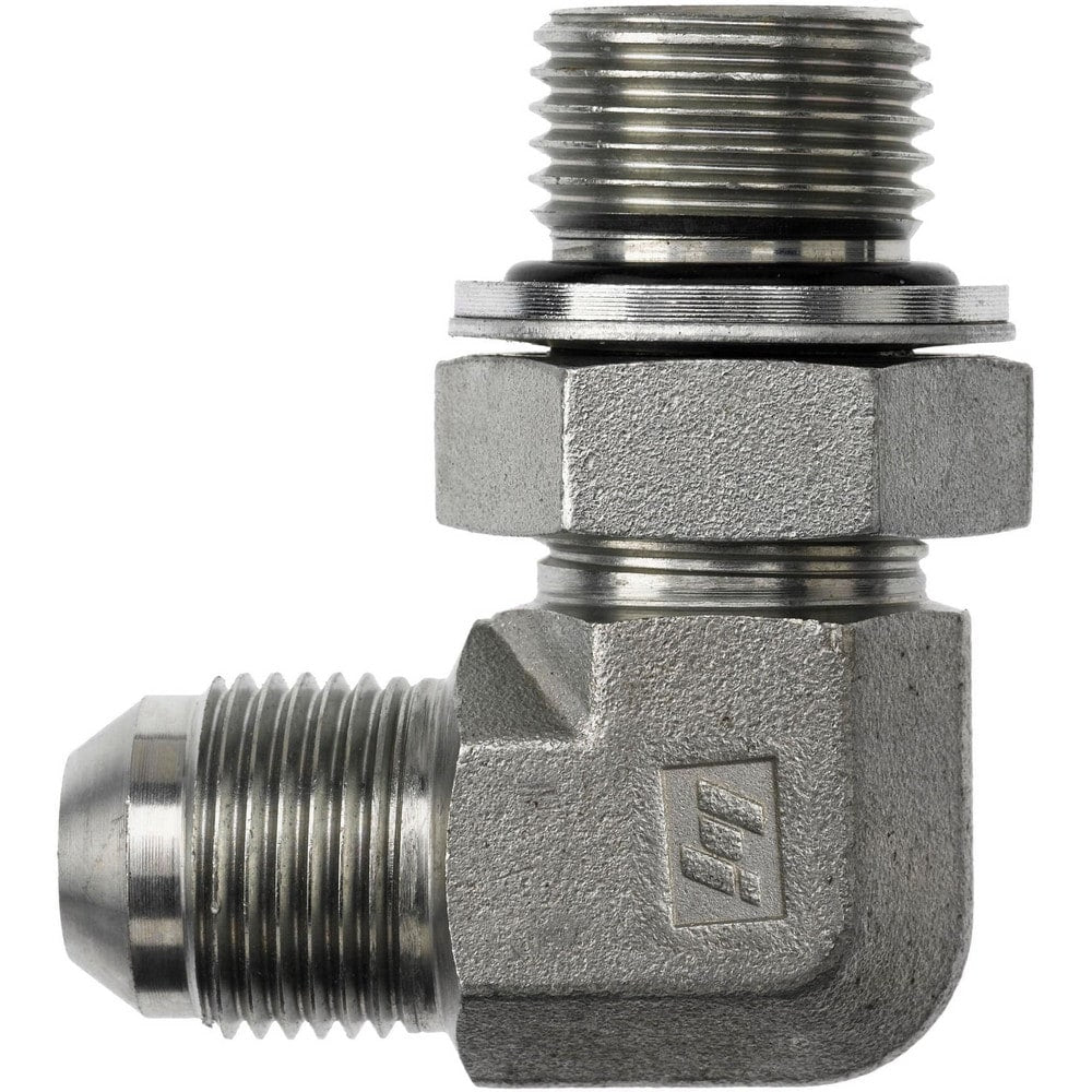 Steel Flared Tube 90 Deg Elbow: 3/4-14 x 7/8-14 Thread, 37 deg Flared Angle