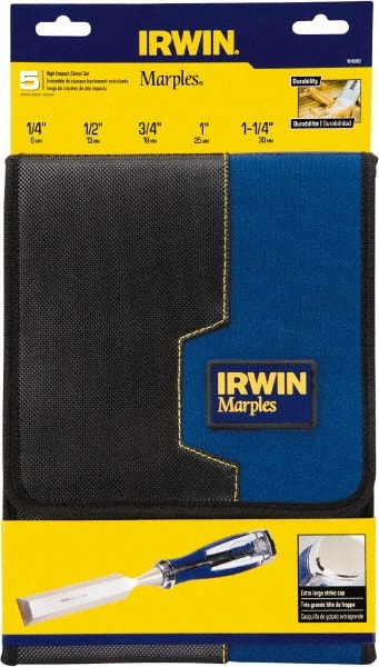 Irwin - 5 Piece Wood Chisel Set - Acetate, Sizes Included 1/4 to 1-1/4"