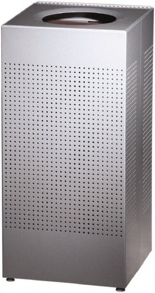 Rubbermaid - 16 Gal Silver Square Decorative Waste Receptacle With Top - Steel, 30" High x 374.65mm Long x 374.65mm Wide