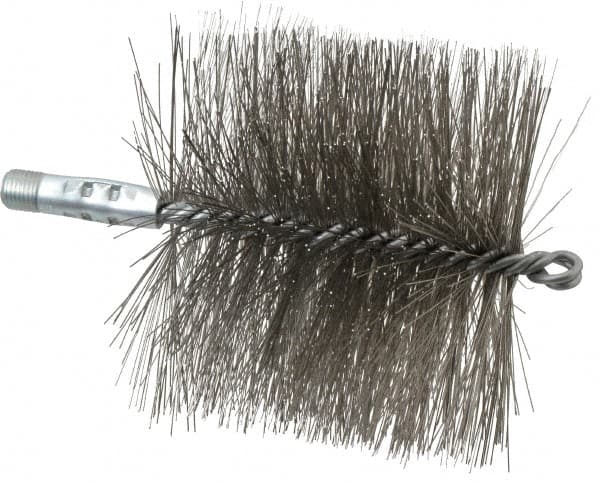 Schaefer Brush - 4-1/2" Brush Length, 5" Diam, Double Stem, Double Spiral Tube Brush - 7-1/4" Long, Stainless Steel, 1/4" NPSM Male Connection