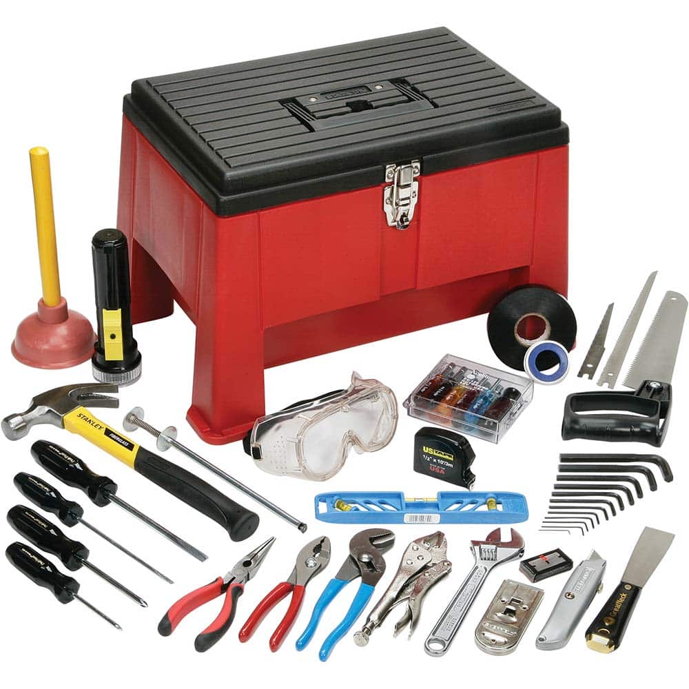 Accessories | Flashlight; Screwdrivers; Hammer; Pliers; Nest of Saws; Nutdrivers; Wrench; Measuring Tape; Torpedo Level; Goggles |