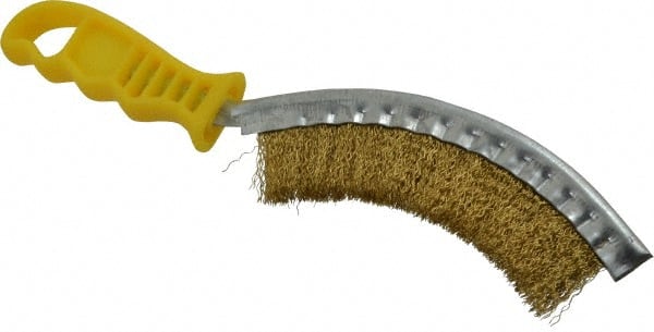 Made in USA - 1" Trim Length Brass Scratch Brass Brush - 5-1/2" Brush Length, 10" OAL, 1" Trim Length, Plastic Ergonomic Handle