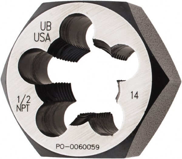 Union Butterfield - 1/2-14 NPT, 1-5/8" Hex, Right Hand, Hex Rethreading Die - 3/4" Thick, Adjustable, Chromium Steel, Series 2025