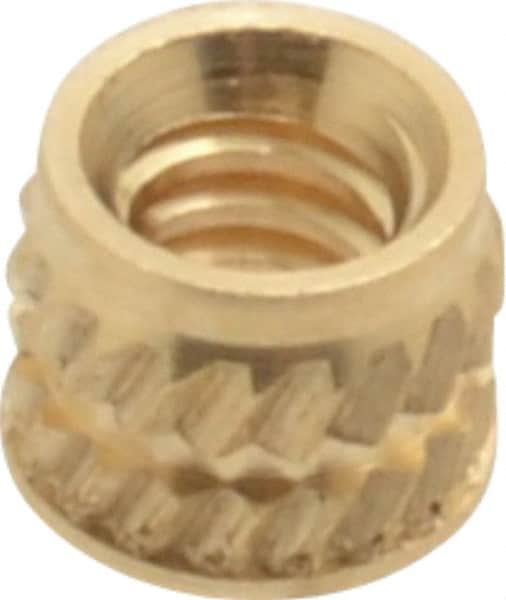 E-Z LOK - #4-40, 0.153" Small to 0.159" Large End Hole Diam, Brass Single Vane Tapered Hole Threaded Insert - 0.172" Insert, 0.157" Pilot Diam, 0.135" OAL, 0.093" Min Wall Thickness