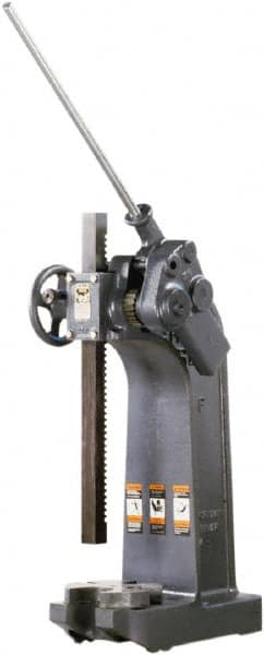 Dake - 1-1/2" Ram, 7-3/4" Throat Depth, 6 Ton Manual Arbor Press - 20-1/4" Max Work Height x 15-1/2" Max Work Width, Compound Leverage, 66:1 Leverage Ratio, 8-1/4" Base Width x 20" Base Depth