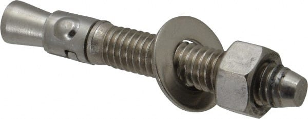 Powers Fasteners - 3/8" Diam, 3/8" Drill, 2-3/4" OAL, 1-1/4" Min Embedment Wedge Expansion Concrete Anchor - 304 Stainless Steel, Hex Nut Head, Hex Drive, 1-5/8" Thread Length