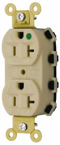 Straight Blade Receptacles; Receptacle Type: Duplex Receptacle; Grade: Hospital; Color: Ivory; Grounding Style: Self-Grounding; Amperage: 20.0000; Voltage: 125V AC; Wiring Method: Wiring Module; Flanged: No