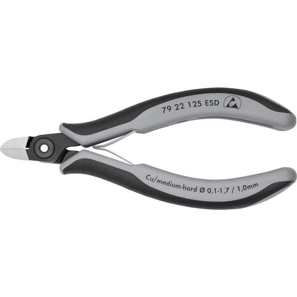 Features | forged, multi stage oil-hardened.; Precision pliers for ultra fine cutting work in electronics and fine mechanics. Very precisely ground and sharp cutting edges with very small bevels for precise cutting work on small electronic components. Cutting edge hardness (approx. 64 HRC). Approx. 20% lighter than conventional electronics pliers. Bolted joint with carefully manufactured joint surfaces for even,. Low-friction movement throughout the entire opening range. Double spring for a gentle and even opening. Optimized handle grips for comfort. Round head. ESD (electrostatic discharge) handles discharge electrostatic energy through the handles in a gradual and controlled manner which protects components endangered by electrostatic discharge. Ball bearing chrome steel |