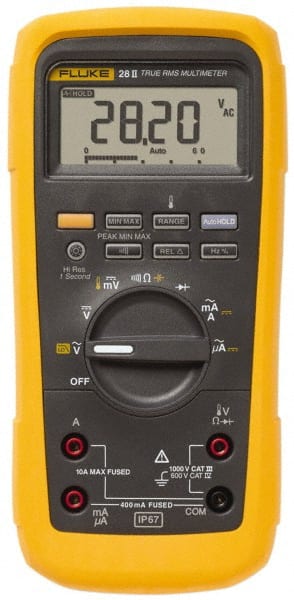 Fluke - 28-II, CAT IV, CAT III, 1,000 VAC/VDC, Digital True RMS Auto Ranging Manual Ranging Multimeter - 50 mOhm, Measures Voltage, Capacitance, Current, Frequency, Resistance, Temperature
