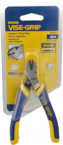 Irwin - 4-1/2" OAL, Diagonal Cutter - 1/2" Jaw Length x 7/64" Jaw Width, Oval Head, ProTouch Handle