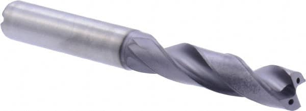 Kennametal - 3/8" 180° Spiral Flute Solid Carbide Screw Machine Drill Bit - Multilayer TiAlN Finish, Right Hand Cut, 47mm Flute Length, 89mm OAL, Flat-Bottom Point, Straight Shank, Through Coolant