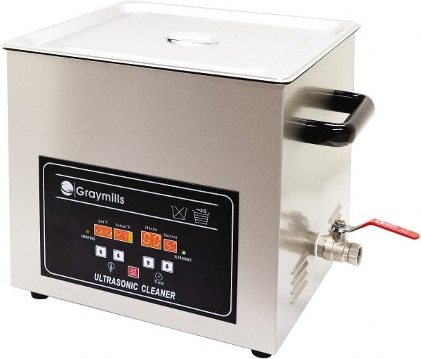 Graymills - Bench Top Water-Based Ultrasonic Cleaner - 1.7 Gal Max Operating Capacity, 304 Stainless Steel Tank, 304.8mm High x 13" Long x 7" Wide, 120 Input Volts