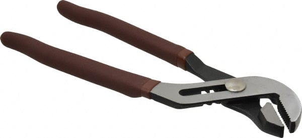 Paramount - 10" OAL, 2" Max Capacity, 2" Jaw Length, 7 Position Gooseneck Tongue & Groove Pliers - Serrated Straight Jaws, Standard Head, Plastic Dipped Handles