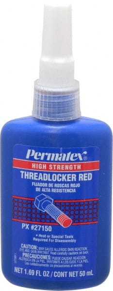 Permatex - 50 mL Bottle, Red, High Strength Liquid Threadlocker - Series 271, 24 hr Full Cure Time, Hand Tool, Heat Removal