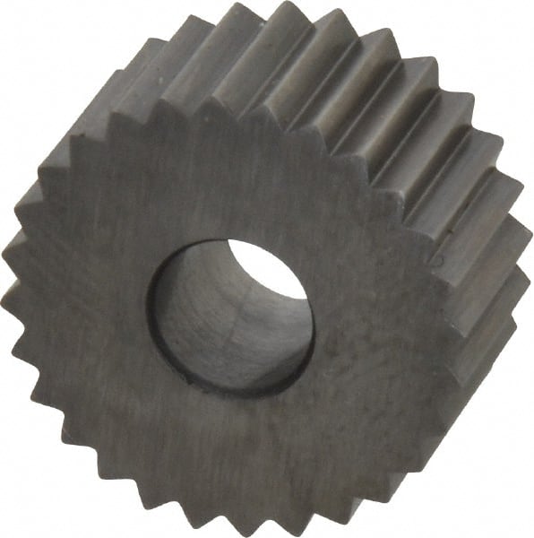 Made in USA - 3/4" Diam, 90° Tooth Angle, 12 TPI, Standard (Shape), Form Type High Speed Steel Straight Knurl Wheel - 3/8" Face Width, 1/4" Hole, Circular Pitch, Bright Finish, Series KP