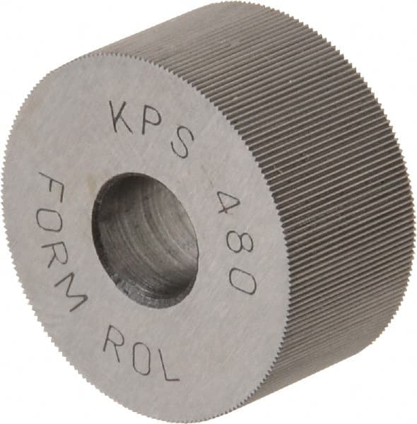 Made in USA - 3/4" Diam, 70° Tooth Angle, 80 TPI, Standard (Shape), Form Type High Speed Steel Straight Knurl Wheel - 3/8" Face Width, 1/4" Hole, Circular Pitch, Bright Finish, Series KP