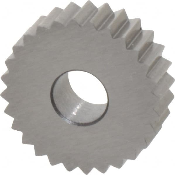 Made in USA - 3/4" Diam, 90° Tooth Angle, 12 TPI, Standard (Shape), Form Type High Speed Steel Straight Knurl Wheel - 1/4" Face Width, 1/4" Hole, Circular Pitch, Bright Finish, Series KN