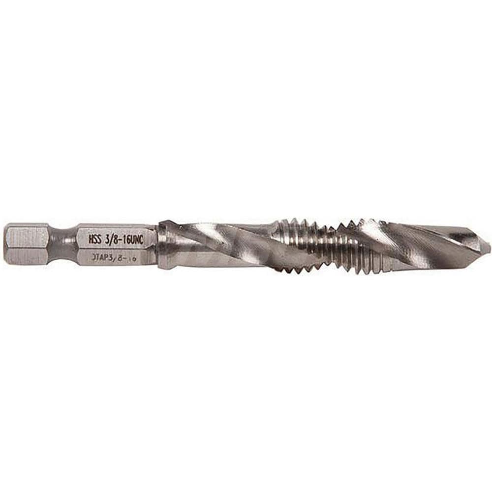 Combination Drill Tap: 3/8-16, 2 Flutes, High Speed Steel