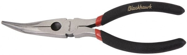 Blackhawk by Proto - 6-1/4" OAL, 2-7/32" Jaw Length x 29/32" Jaw Width, Long Nose Side Cutting Needle Nose Pliers - Round Jaw, Curved Head, Plastic Handles
