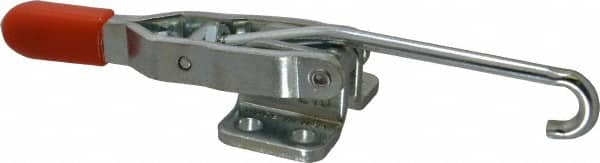 Lapeer - 200 Lb Capacity, Horizontal, J Hook, Flanged Base, Carbon Steel Pull Action Latch Clamp - 2-3/8" Drawing Movement, 5-11/16" OAL, Straight Handle