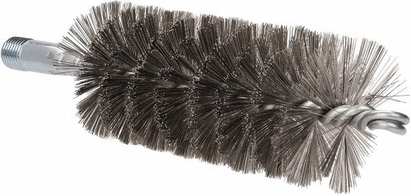 Schaefer Brush - 4-1/2" Brush Length, 2" Diam, Double Stem, Single Spiral Tube Brush - 7-1/4" Long, Stainless Steel, 1/4" NPSM Male Connection