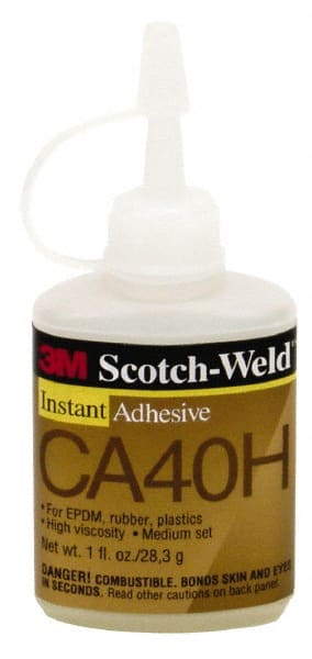 3M - 1 Lb Bottle Yellow Instant Adhesive - Series CA40H, 5 to 30 sec Working Time, 24 hr Full Cure Time, Bonds to Cardboard, Cork Board, Fabric, Fiberglass, Foam, Metal, Paper, Plastic, Rubber & Vinyl