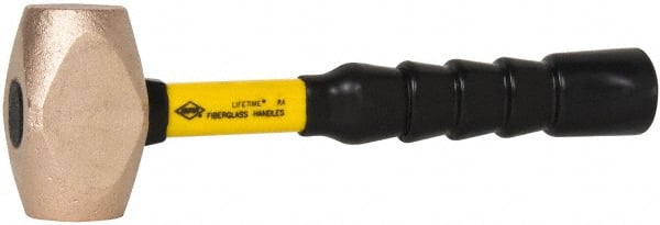 NUPLA - 4 Lb Head 1-43/64" Face Brass Nonmarring Hammer - 12" OAL, Fiberglass Handle