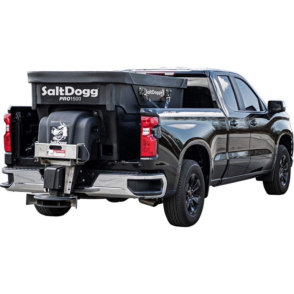 Buyers Products - Landscape Spreaders; Type: Electric Poly Hopper Spreader with Conveyor Chain ; Capacity: 1.5 Cu. Yd ; Volume Capacity (Gal.): 302.96 ; Material: Polyethylene; Stainless Steel; Polyurethane ; Voltage: 12