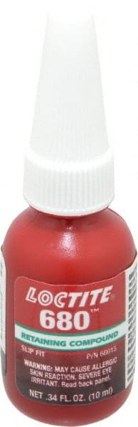Loctite - 10 mL Bottle, Green, High Strength Liquid Retaining Compound - Series 680, 24 hr Full Cure Time, Heat Removal