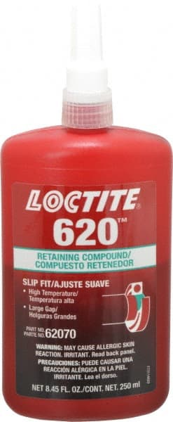 Loctite - 250 mL Bottle, Green, Medium Strength Liquid Retaining Compound - Series 620, 24 hr Full Cure Time, Heat Removal