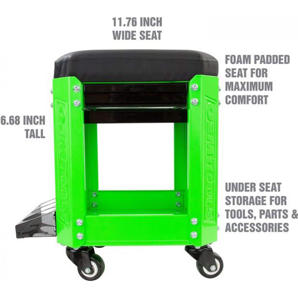 Creepers & Seats; Load Capacity: 280; Load Capacity (Lb.): 280; Number of Wheels: 4.000; Material: Vinyl Foam; Steel; Color: Green; Overall Length: 11.76; Overall Height: 16.68 in; Overall Width: 12; Features: Vinyl Foam Padded Seat For Maximum Comfort; T