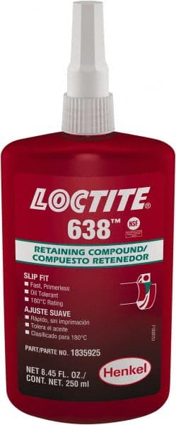 Retaining Compound: 250 mL Bottle, Green, Liquid High Strength, 300 ° F Max Operating Temp, Series 638